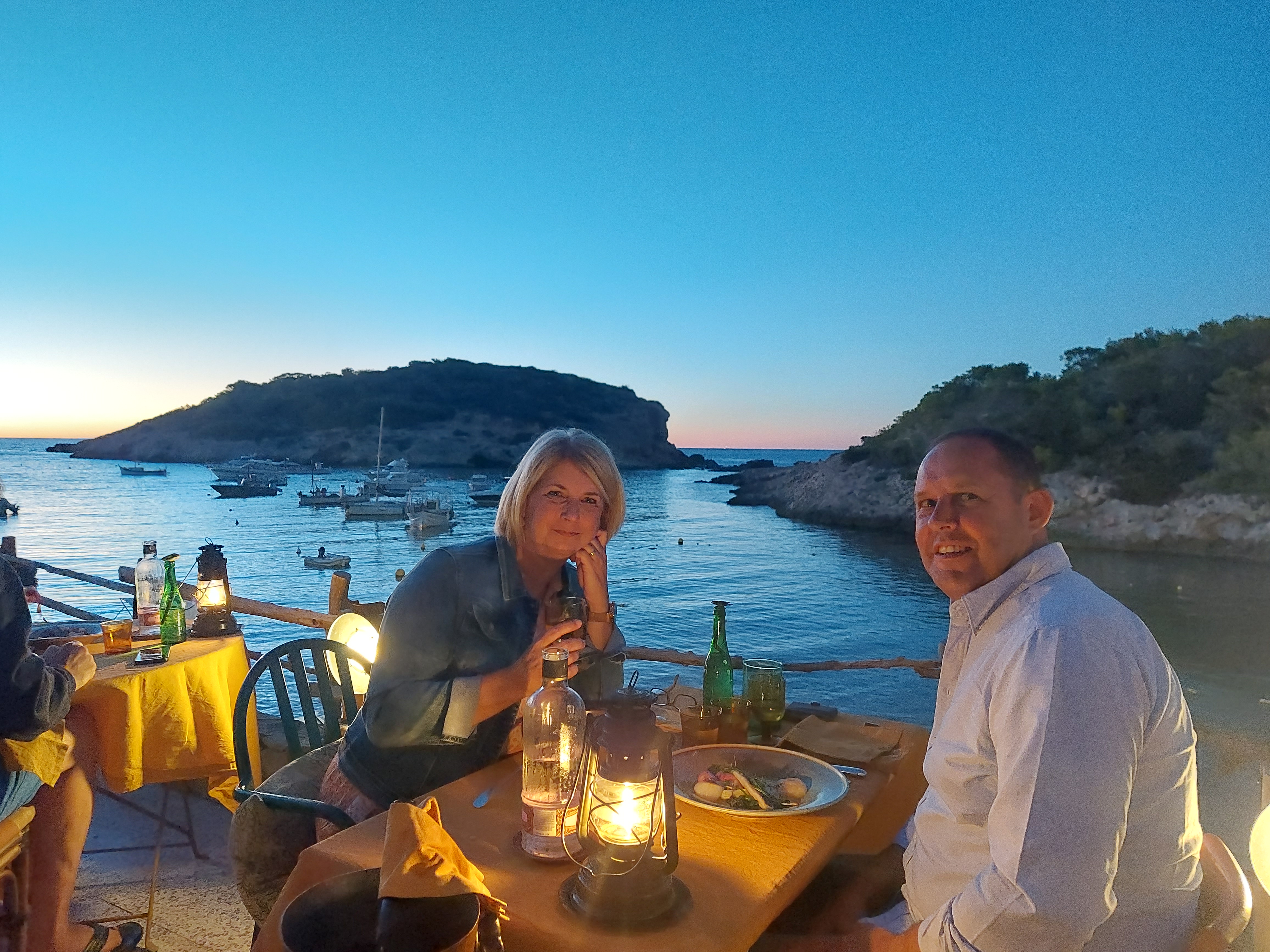 Een paar dagen later vertrokken wij naar Ibiza. Thuis was het fris en guur en daar scheen de zon. Wij staan meteen in standje zen; geen pijnlijke schouders meer, we slapen heerlijk, we wandelen wat, we toeren over het eiland, eten heerlijk bij de kleinste baaitjes, duiken op een bedje aan het strand en kunnen de hele dag mooie boeken lezen. Ik had er weer een: “aan de randen van de dag”. Een prachtig boek van Femke vd Laan (de vrouw van Eberhard vd Laan), over liefde en de laatste momenten met haar man.